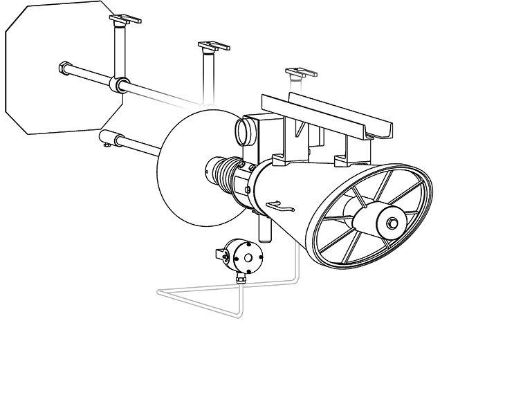 - Основной модуль – устройство локализации взрыва, распыляющиее огнетушащий материал и создающий взрыволокализующий заслон в подземной горной выработке;
