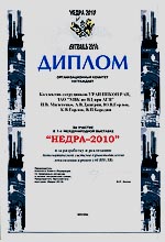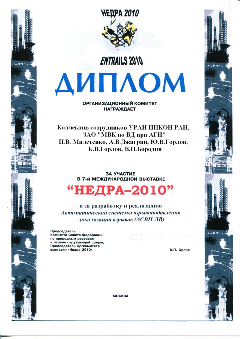 Диплом 7-й международной выставки "Недра-2010" за разработку и реализацию автоматической системы АСВП-ЛВ