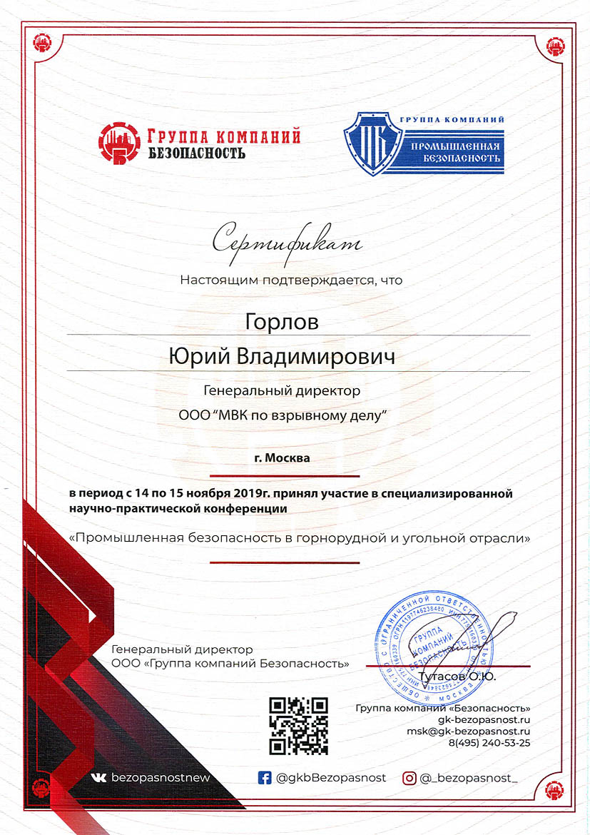 Доклад на специализированной научно-практической конференции "Промышленная безопасность в горнорудной и угольной отрасли"